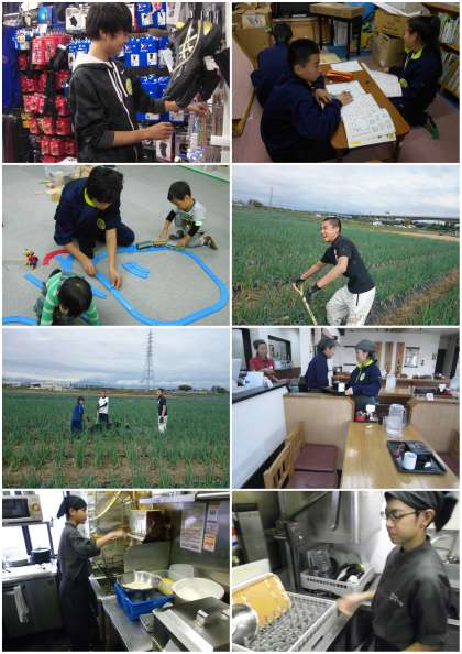 「その1」はバスケットボール専門店、児童館、農園、飲食関係のお店で働いている写真です。