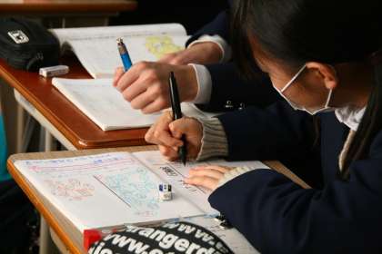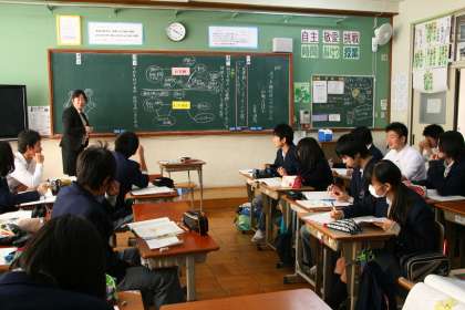 3年生国語の授業。論説文の内容読み取りの手段として、マッピングの手法を使って授業を進めていました。図書館とインターネットの特徴を本文から探し、マッピングしていく。それを全体で確認したあと、それぞれの長所と短所を表にまとめるという内容でした。参観する先生が何人もいたからでしょうか、生徒たちはいつもよりひかえめな表現だったそうです。教科書、ノートを確認しながら作業を進めてます。いわば、自分自身の中での対話...。その対話が深まれば深まるほど、個人の学びは深くなる。