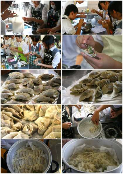 1.餃子の皮で包む。これがなかなか難しい 2.どの生徒も真剣!
