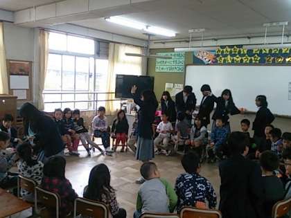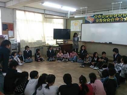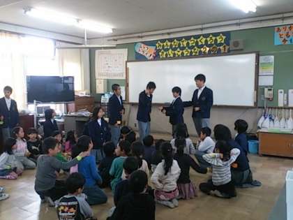1年生 小学校訪問 (その1) 公開日 2014/11/12 更新日 2014/11/12 1年生 1限目、1年生は校区の4小学校へ出発しました。小学校の2限、3限を使わせていただいての今回の小学校訪問。「読み聞かせ」が中心ですが、まずはゲーム。 砂川小学校での様子が送られてきましたので、写真を載せておきます。たいへん盛り上がっているそうです。いいスタートを切ったようです。