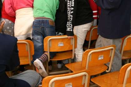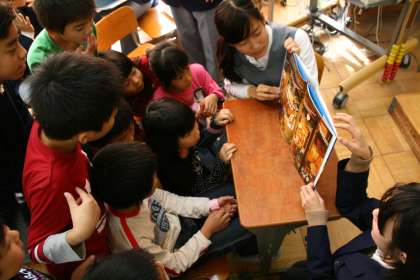 「座ってなんていられない!」 身を乗り出して、絵本に見入る。