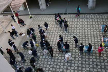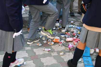 こんなに空き缶が... 公開日 2014/11/14 更新日 2014/11/14 学校の様子 上から見た分別作業風景。 左手前に写っているのが「空き缶踏みつぶし班」。 踏んでつぶして、ぺったんこになった空き缶。それでも袋に詰めてまとめると、こんなふうになりました。 ご家庭の協力があったからこその、この成果だと思います。ありがとうございました。