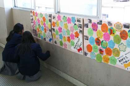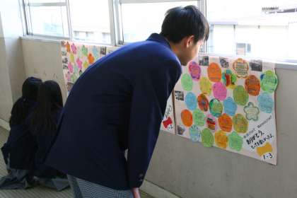 見入る 公開日 2014/11/18 更新日 2014/11/18 1年生 小学生から届いたメッセージに見入る生徒たち。 一人ひとりの直筆で、ありがとうの気持ちが綴ってある。 生徒のアイディアで作った「ネームウォッチ」は、とても評判だったことが多くの文面からわかります。