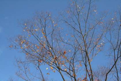 今日の空の青さ。 青空をバックに、葉が落ちた木の梢... 冬はそこまで来ています。