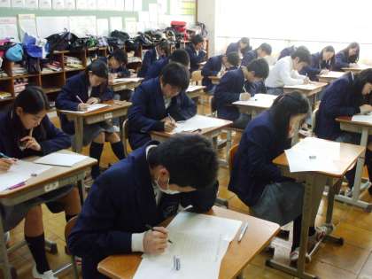 最後の教科(定期テスト) 公開日 2014/11/28 更新日 2014/11/28 学校の様子 最終教科のテスト中のようす。 あたりまえのことなのですが、無音の校舎。 廊下を歩く足音に気を遣ってしまいます。 ※写真は上から3年生、2年生、1年生