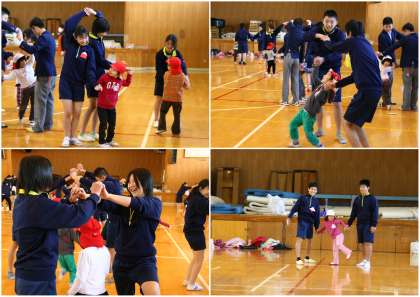 3年生、家庭科の授業。幼児とのふれあい体験ですが、今日は4,5歳児。