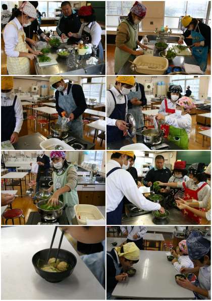 技術の時間に育てた水菜を使っての、最後の調理。「水菜鍋」です。