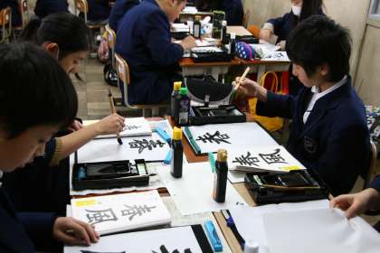 このところ、国語の時間は習字を 公開日 2014/12/16 更新日 2014/12/16 1年生 1年生の国語の時間。先週から「書写」の授業となってます。 今日は「春風」を清書。横画の間隔に注意して書いていました。 冬休みには書き初めも宿題となっています。