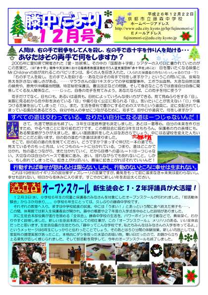 「藤中だより 12月号」はこちらからもご覧いただけます。藤中だより 12月号