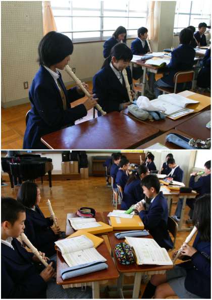 何人かリコーダーを忘れた人がいましたが、その人はノートを丸めたり、筆箱を使ったりして、「指の運び」の練習をしていました。大まじめに一生懸命やっているところが、何とも微笑ましく感じました。