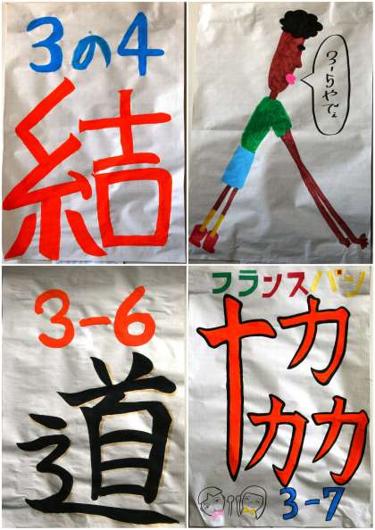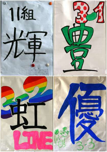 3年生 「クラスを表す漢字1字」 公開日 2015/01/08 更新日 2015/01/08 3年生 11組と3年生の作品。 いちばん上が11組と1組〜3組 まん中の写真が4組〜7組 いちばん下が8組〜10組