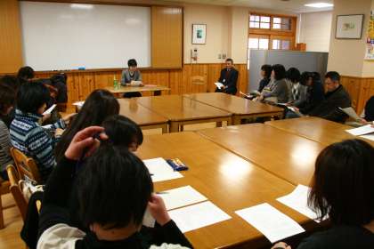 「家庭教育講座」 −学童期・思春期の子育て− 公開日 2015/01/19 更新日 2015/01/19 学校の様子 本校スクールカウンセラーの岸田先生を講師に、家庭教育講座が行われました。 テーマは「子どものこころを知っていく〜子育ての困りを通して〜」。 小学校の保護者の方を含め、25名ほどの参加者。 岸田先生のお話を聴いたあとは、質疑応答という形で、困りについて考えを深めていきました。