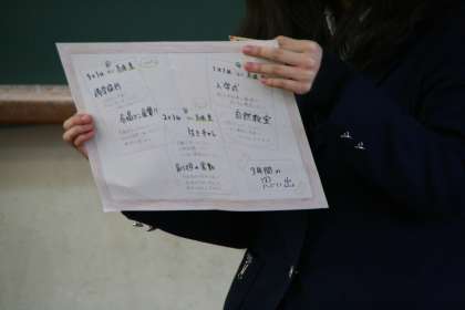 3年生、国語の時間。3年間の思い出を一枚の紙に表し、音声を使っても表現する。