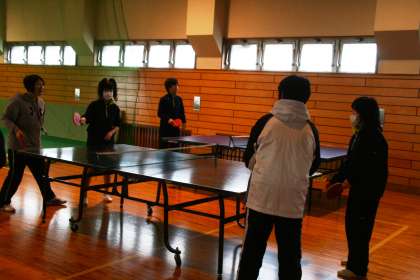 11組 体育 「卓球」 公開日 2015/01/28 更新日 2015/01/28 学校の様子 5時間目、11組の体育の授業のようす。 対戦式で、卓球をしています。 伸び伸びと楽しくやることで、自然と運動量も増えていく...。 先生も「よっしゃぁ〜!」と叫びながら、真剣にゲームを楽しんでいます!