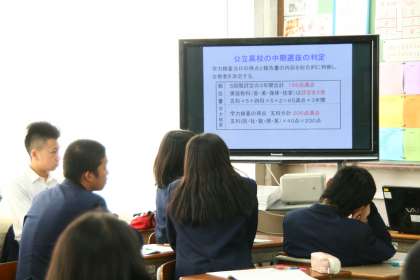 2年生 進路学活 公開日 2015/02/04 更新日 2015/02/04 2年生 2年生にとっては1年後となる高校入試。 いったいどんな入試制度になっているんだろう? そもそも、どんな学校が、どんな学科がある? 「進路ノート」を使っての学習を進めました。