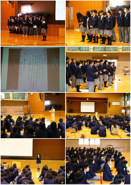 最初に生徒会本部から東九条マダンの発表がありましたが、藤中でのあと1年間、さまざまなことを知り、感じ、考え、行動していきましょう!