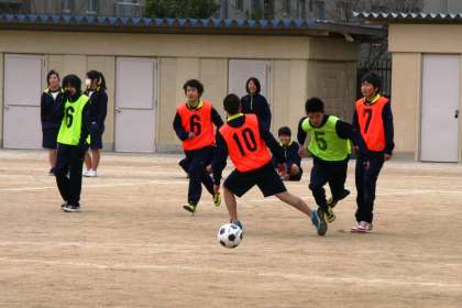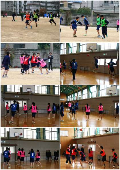 みんな頑張ったぞ! 2年生「球技大会」 公開日 2015/03/05 更新日 2015/03/05 2年生 午後、2年生の球技大会が行われました。グラウンドではサッカー、体育館ではバスケットボール。 掃除の時に「先生!球技大会、何位だったと思う?」と尋ねてくる生徒。とっても楽しかったみたいで、自分を含め、学級の仲間の活躍を自慢げに話していました。 いい球技大会だったようです。