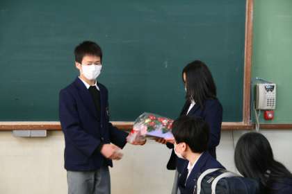 2年生から3年生へ「コサージュ」 公開日 2015/03/10 更新日 2015/03/10 学校の様子 2年生が作った「コサージュ」 明日の送る会で胸につけてもらうべく、本日の終学活で3年生の各クラスに届けました