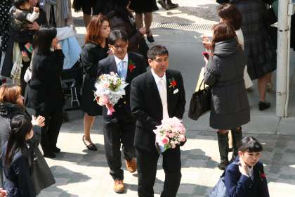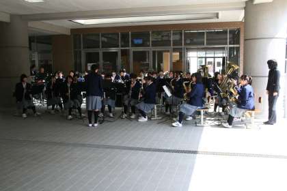 3年11組 保護者と在校生代表でつくった花道。 吹奏楽部の演奏に送られながら...。