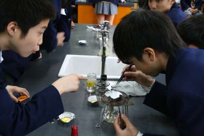 これは...うん! やっぱり! 公開日 2015/03/19 更新日 2015/03/19 1年生 「べっこう飴(あめ)」! 1年生、最後の理科の授業は「べっこう飴作り」。 砂糖水を煮詰めていくと... 普通に沸騰しているときは100度なんですが、水分がなくなっていくと、次第に飴状になり、べっこう色に...。この時の温度は、120度以上になっていますので、やけどの注意して火から外し、つまようじをさす。あとは冷えるのを待って...。