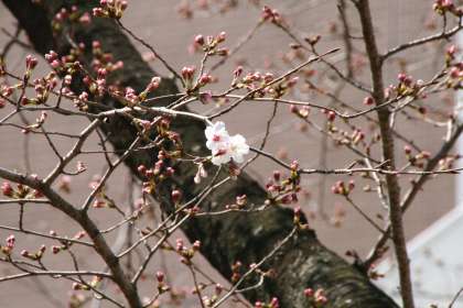 咲きました! 公開日 2015/03/25 更新日 2015/03/25 学校の様子 「咲いてますっ!」と教えてくださった先生と見に行くと、なるほど、いち、にぃ...さん...。 東門の桜、咲き始めました。