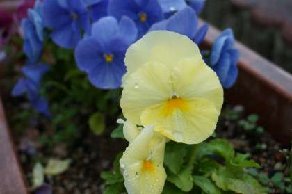 しばらく晴れ続きで埃や黄砂まみれになっていたビオラもシャワーを浴びたようにきれいになりました。入学準備完了です。