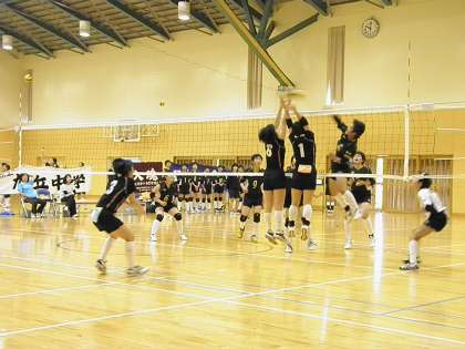 春季大会女子バレー部 公開日 2015/05/03 更新日 2015/05/03 学校の様子 5月3日(日) 春体女子バレーボール 2回戦 VS旭丘中 0−2 相手は新人戦ベスト4の強豪チーム 1セット目を失い,気持ちを入れ替えて臨んだ2セット目, 序盤はシーソーゲームとなりましたが,徐々にポイントを重ねられ, 無念のストレート負けとなりました。