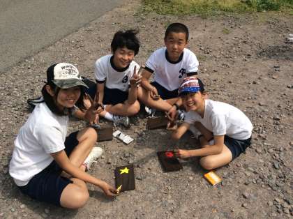 魚つかみ、田植えの裏番組は、焼き板作りです。 板に文字を書くのは、結構難しい!