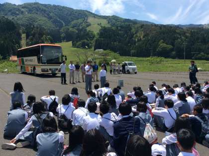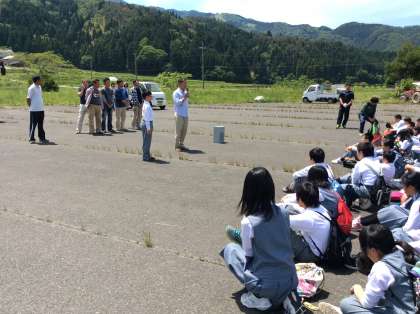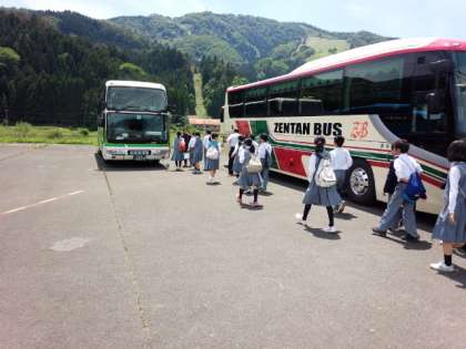 自然教室3日目 公開日 2015/05/22 更新日 2015/05/22 1年生 楽しかった自然教室も終わりが近づいてきました。 昨晩のキャンプファイアーの会場で離村式です。 名色の皆様、大変お世話になりました。 予定通りの出発となりますので、学校到着も予定通りの16:45頃になりそうです。