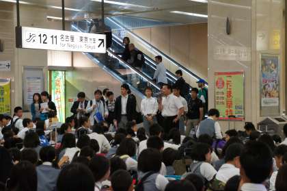 3年生修学旅行 公開日 2015/05/26 更新日 2015/05/26 3年生 3年生が心待ちにしていたこの日がやってきました。 天気もよく、みんなの表情も晴れやかです。 静岡に着けばきっと富士山が美しい姿でお出迎えしてくれることでしょう。 楽しい思い出をたくさん作ってきてくださいね。 集合時の風景と結団式の様子です。
