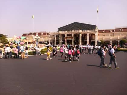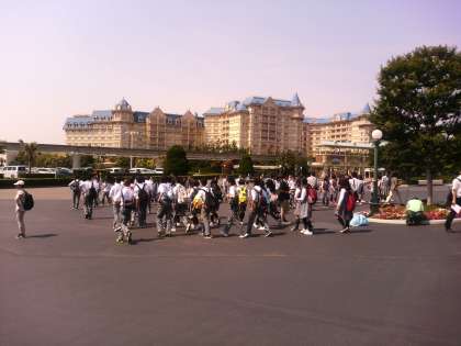 各クラス集合写真の後、お待ちかねのディズニーランドへ入場です。 気温が高く、少々バテ気味の様子です。