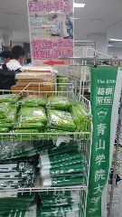 青山学院大学食堂のスパゲッティーと購買部のオリジナルグッズです。