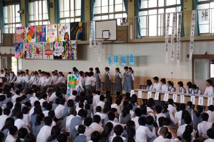 各学年評議会活動目標と活動方針の様子 上から1年生・2年生・3年生