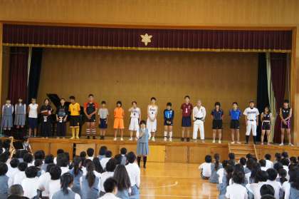 各部キャプテンが、春季大会の総括と反省を元に目標を立て、全校生徒に応援を願いました。