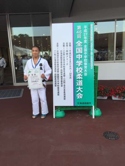 柔道部 全国大会は、男子個人戦 55kg級で見事、第5位入賞という結果を残してくれました。 おめでとうございます。
