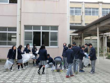 地域美化ボランティア 公開日 2015/11/13 更新日 2015/11/13 学校の様子 11月13日(金)登校時に地域美化ボランティアを行いました。 ゴミを拾いながら登校する生徒の姿が数多く見られました。 少しでも地域の美化や環境の改善につながればと思います。 生徒の皆さん,生徒会本部,美化委員会の皆さん,ご苦労様でした。