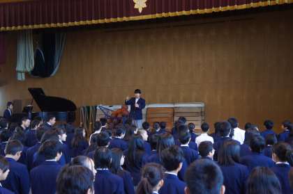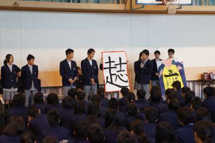 1年生は「一」、2年生は「和」、11組は「協」、3年生は何と創作漢字「走+志」でした。