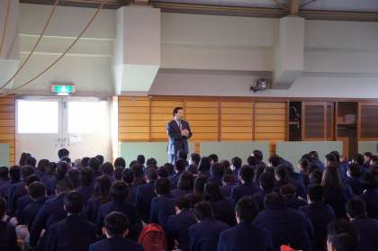 校長先生や担当の先生からに話を聞き漏らさぬように必死の様子でした。