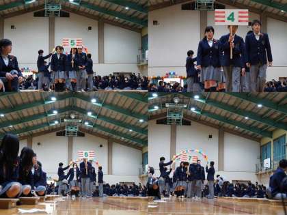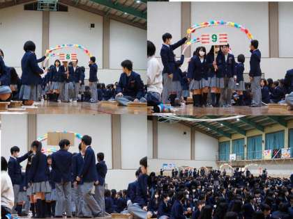 3年生の入場の後、生徒会本部による開会セレモニー、1・2年生の出し物、プレゼント贈呈と続きます。
