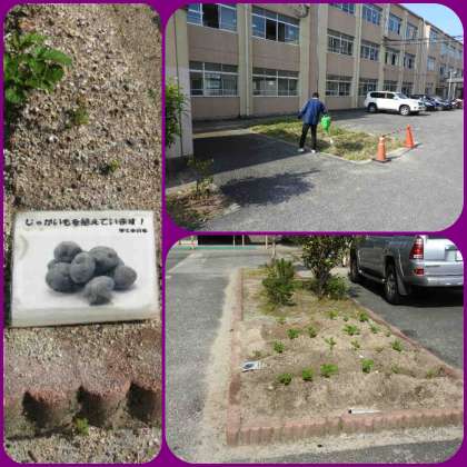 緑化委員会が中心となり、じゃがいもが育てられています。これから水やりが大変ですがよろしくお願いします。