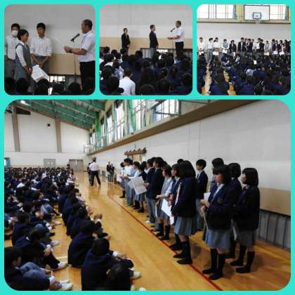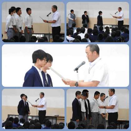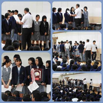 女子団体優勝を納めた卓球部を含め、春季大会の表彰を行いました。