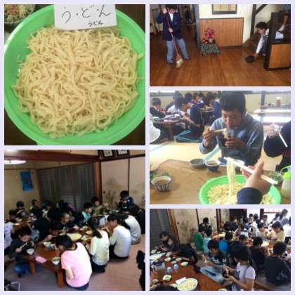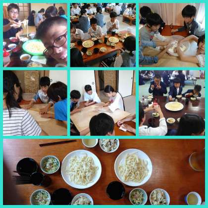 自分たちで作ったうどんは「さいこー」です。