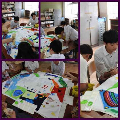 11組では只今、学級旗の制作中。 みんなで力を合わせてがんばっています。
