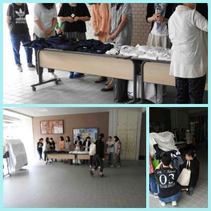 ピロティー付近で通学服リサイクルを行っています。