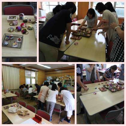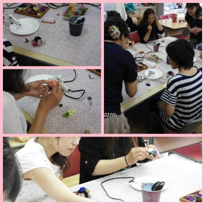 今回は花飾りの作成を行いながらの交流会になりました。