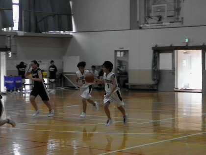 女子バスケ夏季大会 公開日 2016/07/19 更新日 2016/07/19 学校の様子 7月18日(月祝) 女子バスケットボール1回戦 VS京都朝鮮中級学校 98−32 夏季大会の初戦,前半は緊張からか少し堅い雰囲気で,ミスもちらほらと出ていましたが,徐々に自分たちのリズムを取り戻し,快勝することができました。