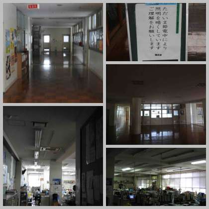 授業で使用するエアコン電力を最優先し、校内ではその他の場所の節電を行っています。職員室では照明やエアコンオフにしている時間帯もあり、節電に努めています。