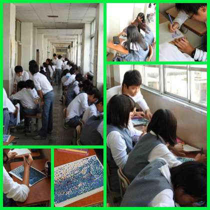 1年生は展示作品係、ステージ係(劇)に分かれて作業をもくもくと進めています。