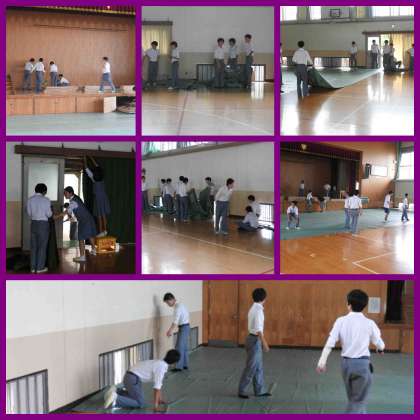 ステージ発表に向けて体育館の準備を行いました。