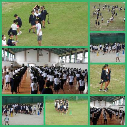 藤中祭 体育の部 予行3 公開日 2016/09/21 更新日 2016/09/21 学校の様子 午後からは小雨の中、各学年に分かれて集団競技や集団演技の練習を行いました。 当日、どんな演技に仕上がるかお楽しみに。